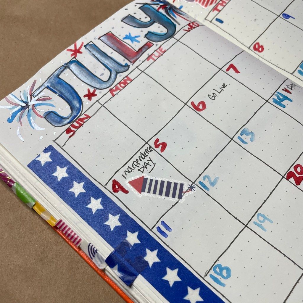 I like having a seasonal/holiday theme. I think it adds some fun and whimsy to my bullet journals but some months I try to challenge myself to mix it up and use various colors. July is always about red, white, and blue and summer fun.
