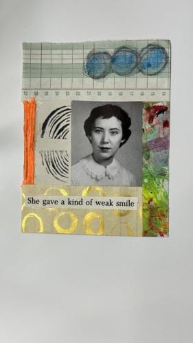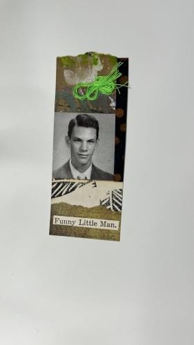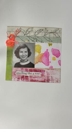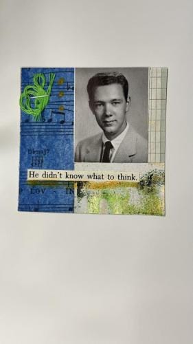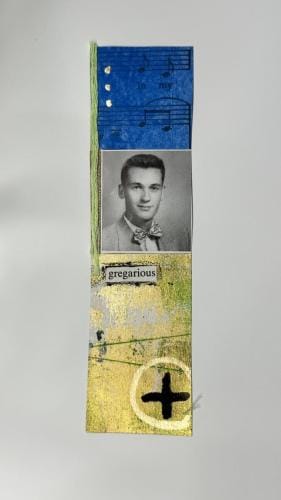 I had recently salvaged an old college yearbook from a used book bin and after inspiration from other mixed media artists using yearbook images in their art, decided to incorporate the multitude of images from my thrifted book.