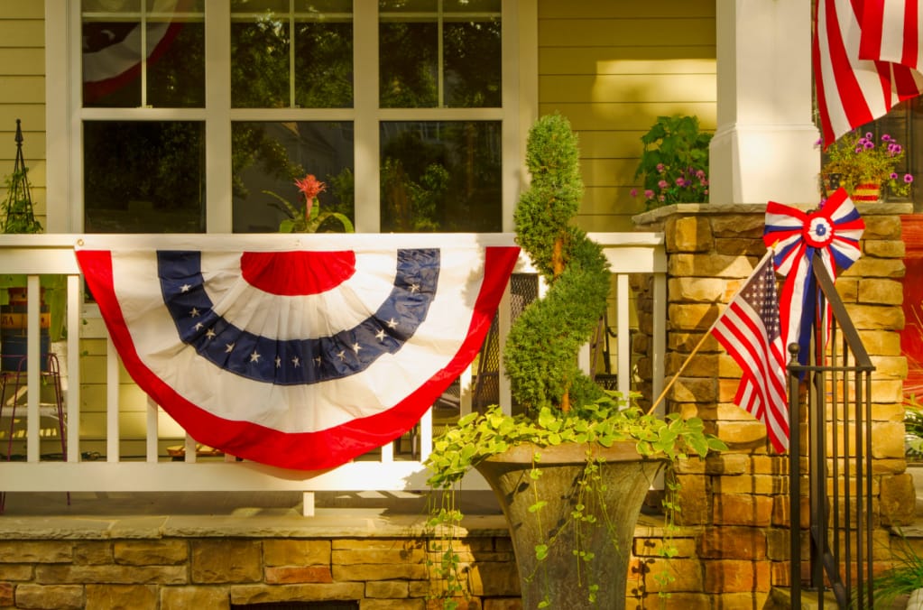 3. Deck out your house in red, white, and blue and have a backyard cookout with hamburgers, hot dogs, and apple pie. I love this antiqued red, white & blue bunting for an old fashioned traditional look.